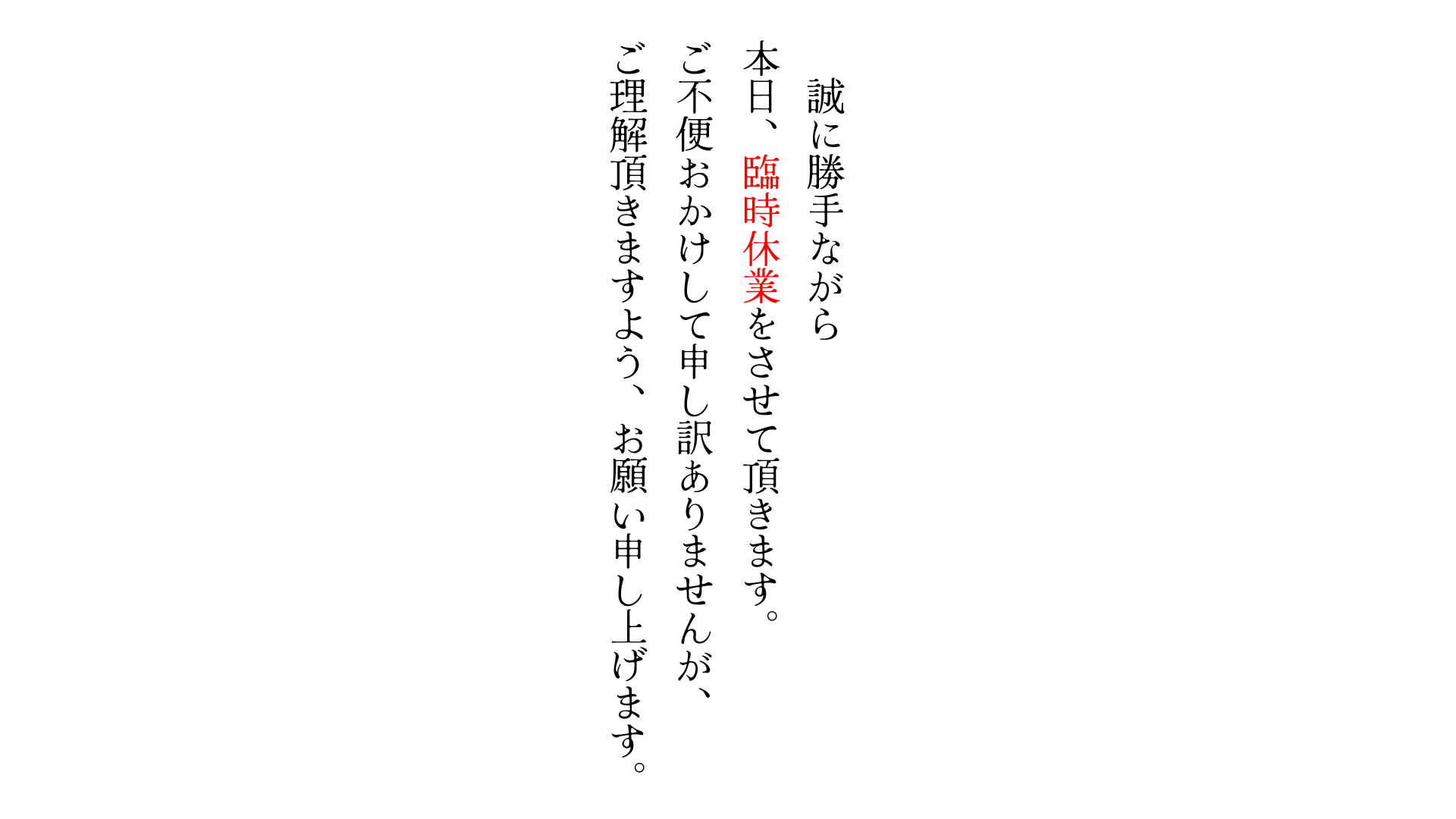 急なご案内となり大変恐縮ですが、スタッフ体調不良のため、・・・